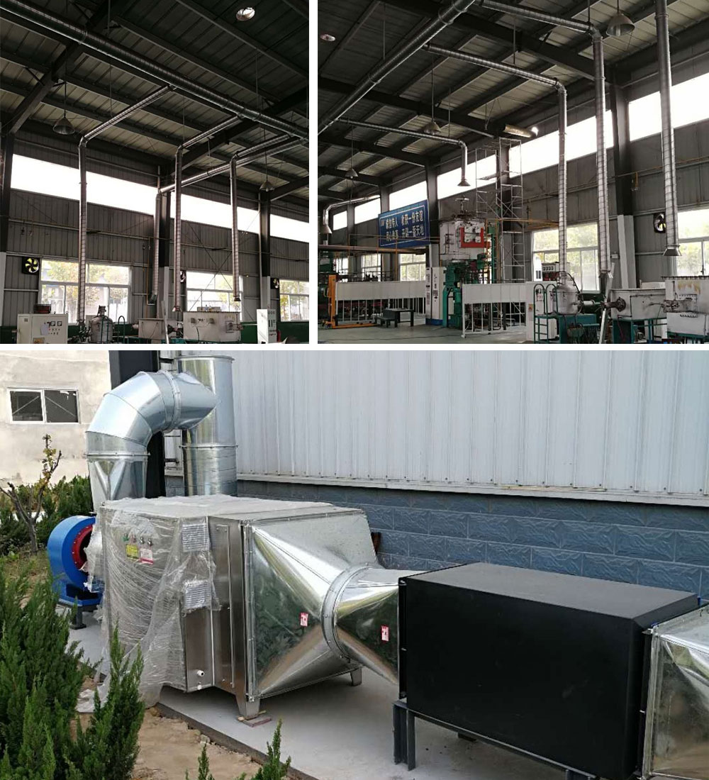 ①燒結(jié)車間東半段: 廢氣收集+ UV光催化氧化設(shè)備+引風(fēng)機(jī),風(fēng)量設(shè)計(jì)為15000m3/h。