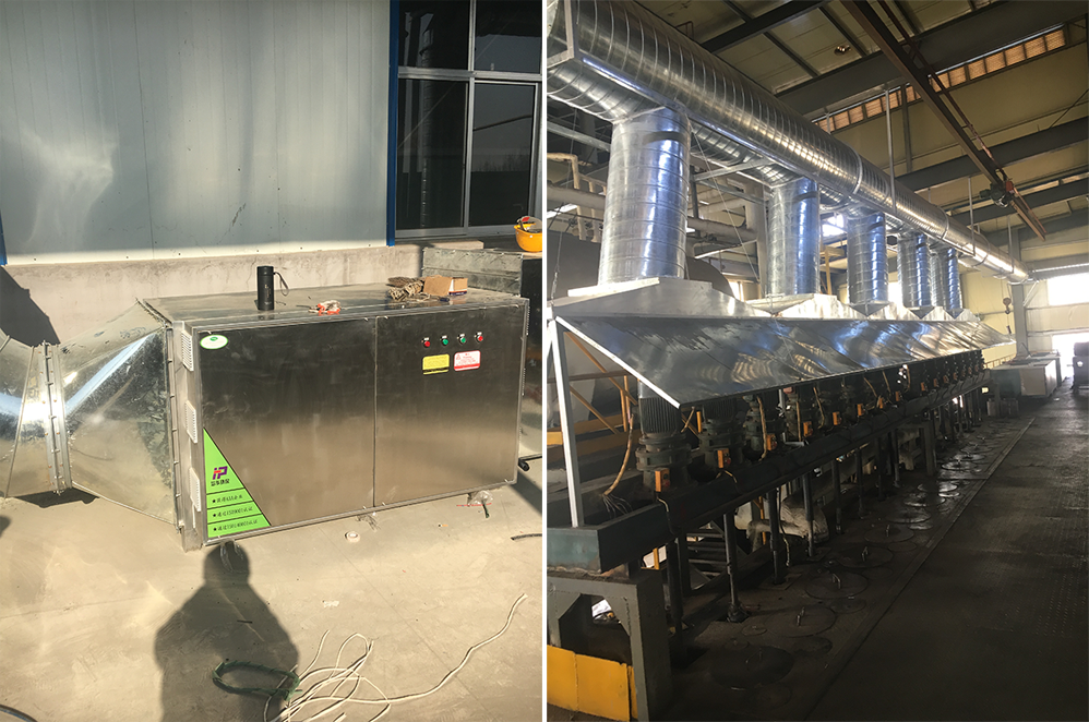 ①熔融機:廢氣收集+UV光催化氧化設備+引風機,風量設計為20000m3/h。
